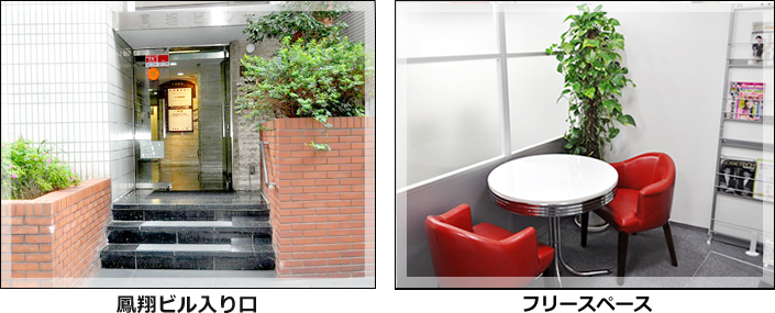 - 赤煉瓦の植木がある鳳翔ビル3階・4階が四ッ谷レンタルオフィスです。