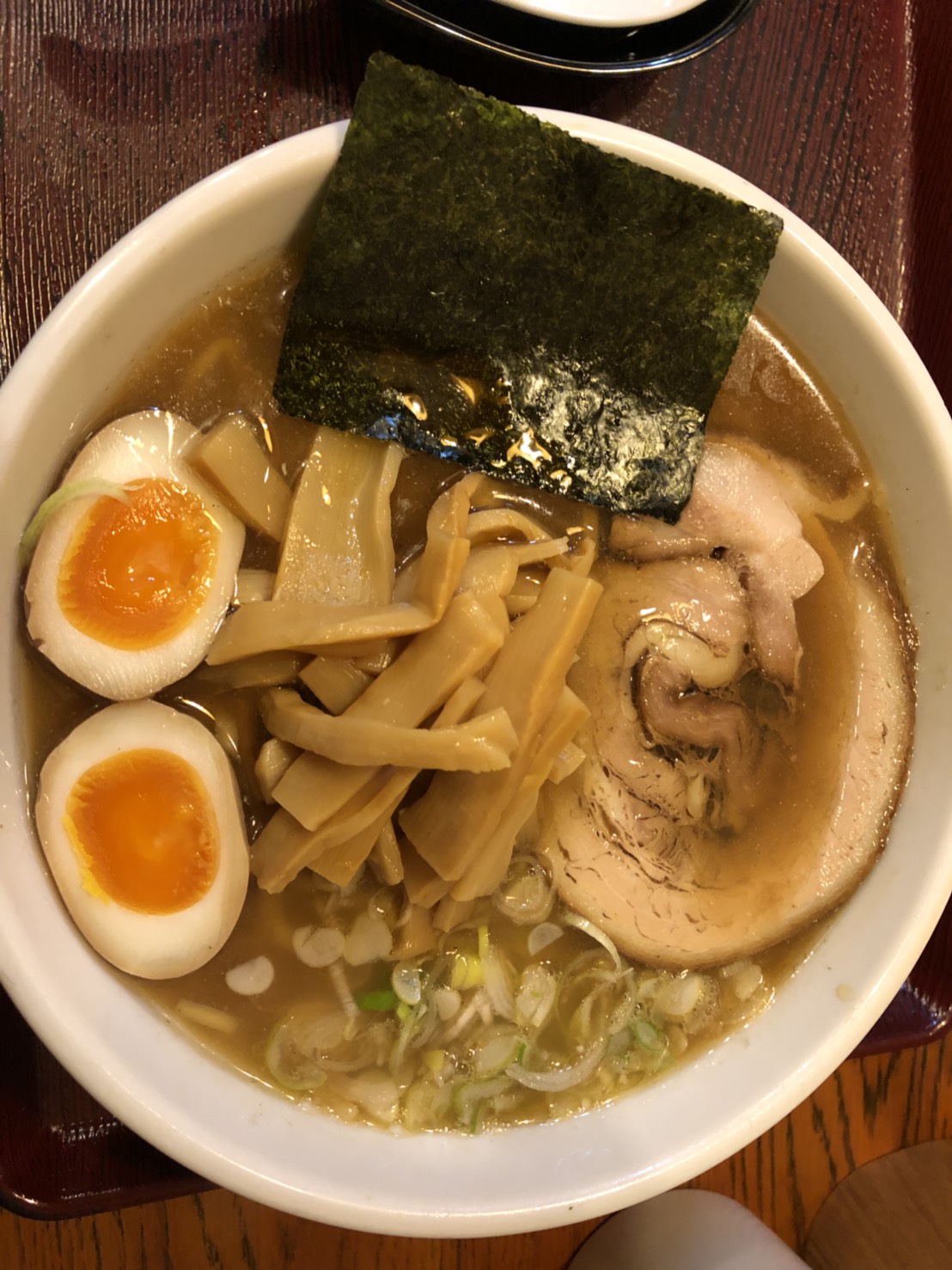 こちらは、こってりの魚介系ラーメンです。普段は塩ラーメンなどあっさり系のラーメンが好きな私ですが