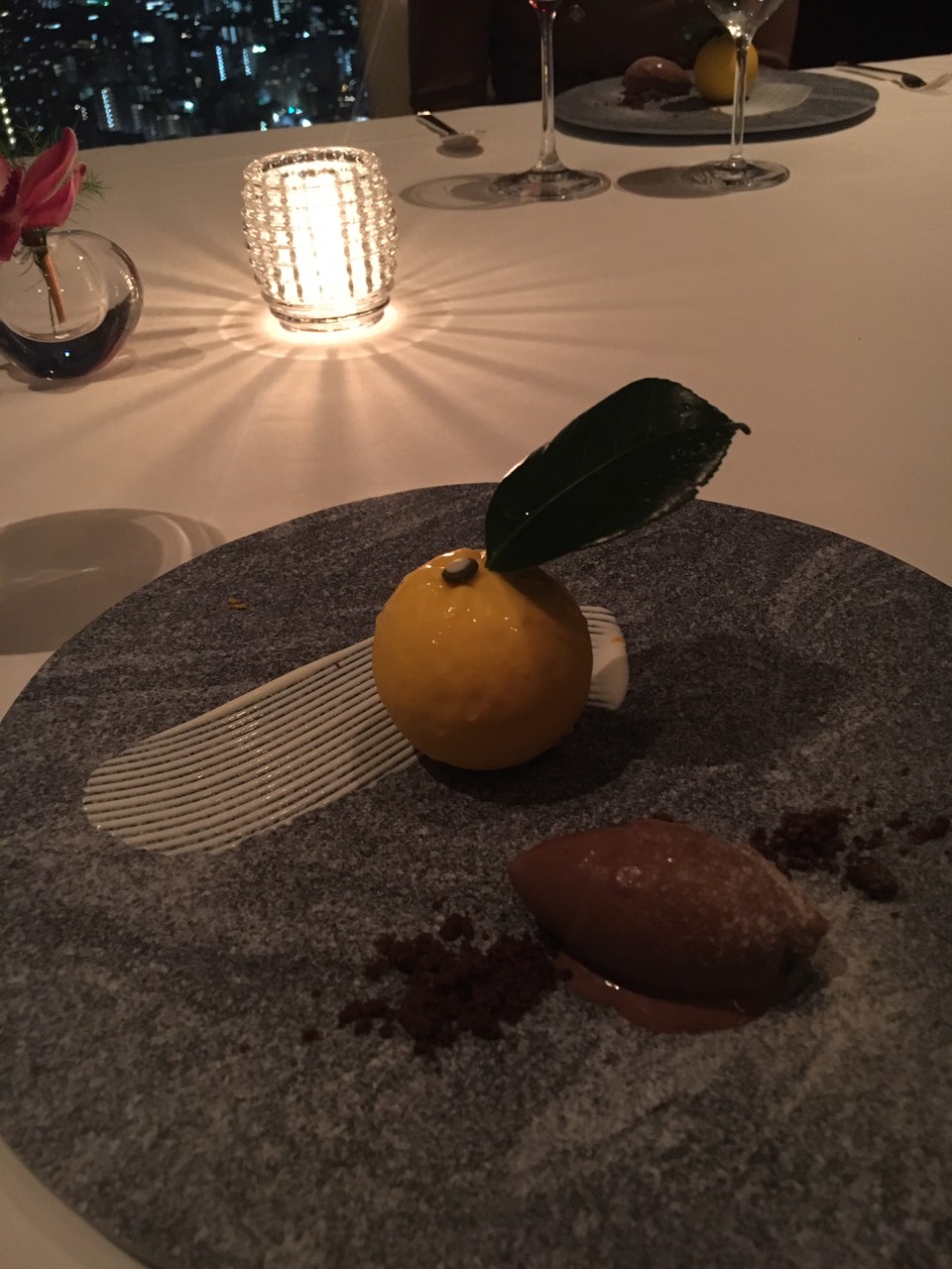 こちらはデザート。ゆずのスイーツとチョコレートアイスでした。