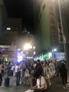 弘大は学生の街で、衣類・アクセサリー、雑貨、飲食店のお店が多いです。