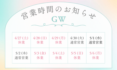 ゴールデンウィーク期間中の営業につきまして、以下のとおりとさせていただきます。