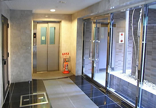 • オートロックの共同玄関:建物1階は、オフィス用玄関と住居用玄関と別々になっています。住居者用の共同玄関はもちろんオートロックです。