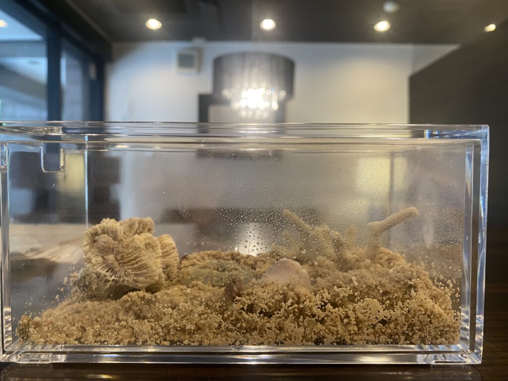 砂にもぐったり、サンゴに上ったり、落っこちたりと