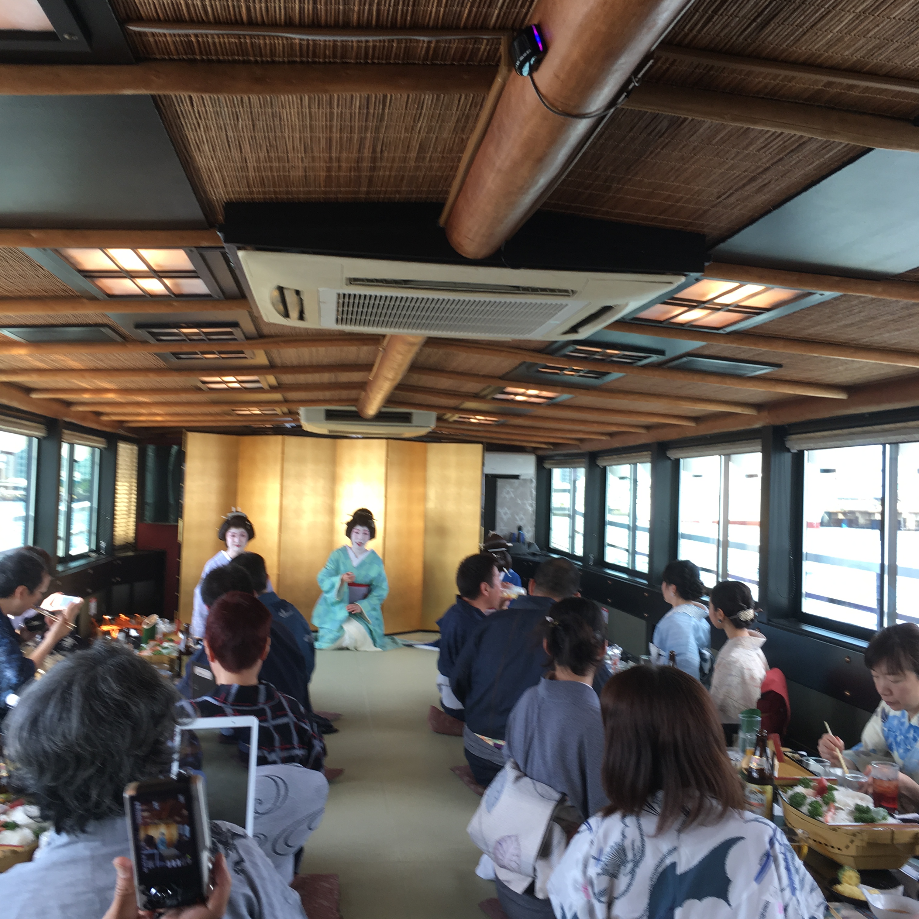 また、お座敷遊びで芸者衆との歓談、お座付き、お座敷遊びとお客様に船遊びを満喫して頂きました。