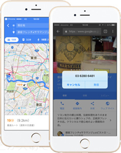 ユーザーはそのまま目的の店舗に直接電話を掛けたり、店舗までの経路を表示させて実際に向かうことができます。