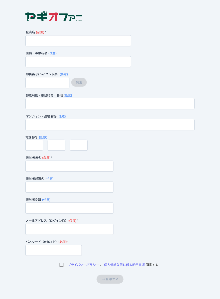 ヤギオファーのアカウントを登録して、画面案内に従って会社情報や求人概要を入力するだけで、