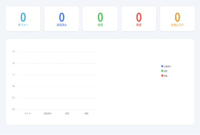 1万円で100名にオファーを送信可能、10名までやり取りができる。成果報酬は0円。ユーザーがオファーを承諾すると、ユーザーの履歴書が開示されて、チャットでやり取りをおこなうことができます。