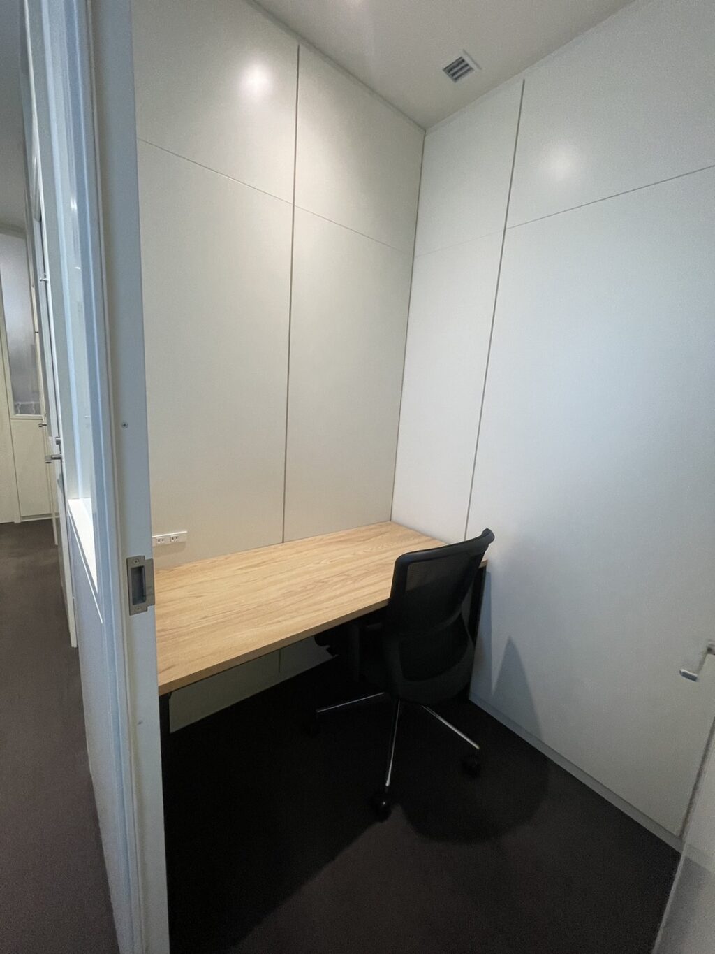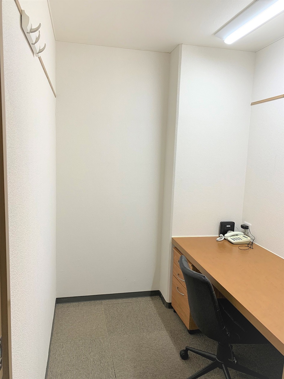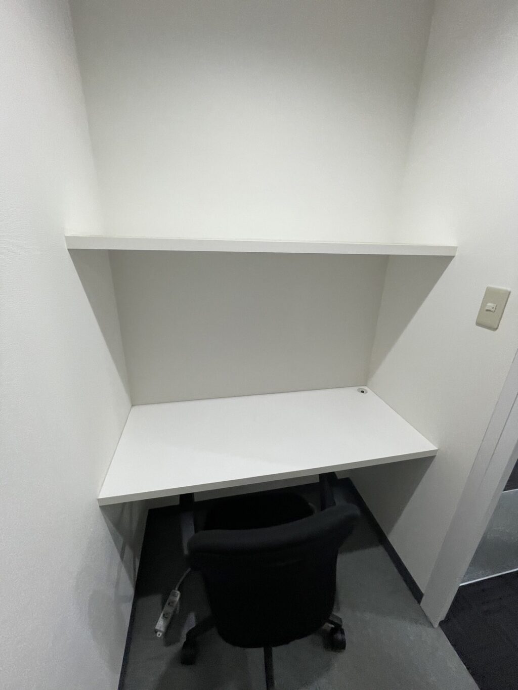 オフィスは、すべて完全個室。造り付机と椅子、キャビネットがすべての部屋に設置してあります。
