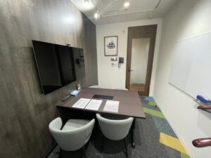 会議室は、1日2時間まで使用できる無料会議室(完全個室)が一部屋。
