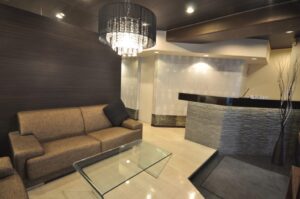ホテルのロビーのような高級感を演出した空間と受付秘書がお客様をお迎え致します。