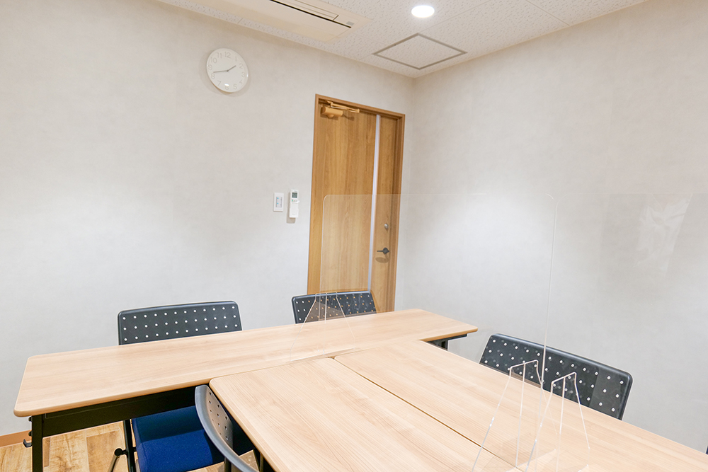 | 設備 | ・ホワイトボード1つ ・テーブル3つ ・チェアー6脚 ・個別空調 ・Wi-Fi |