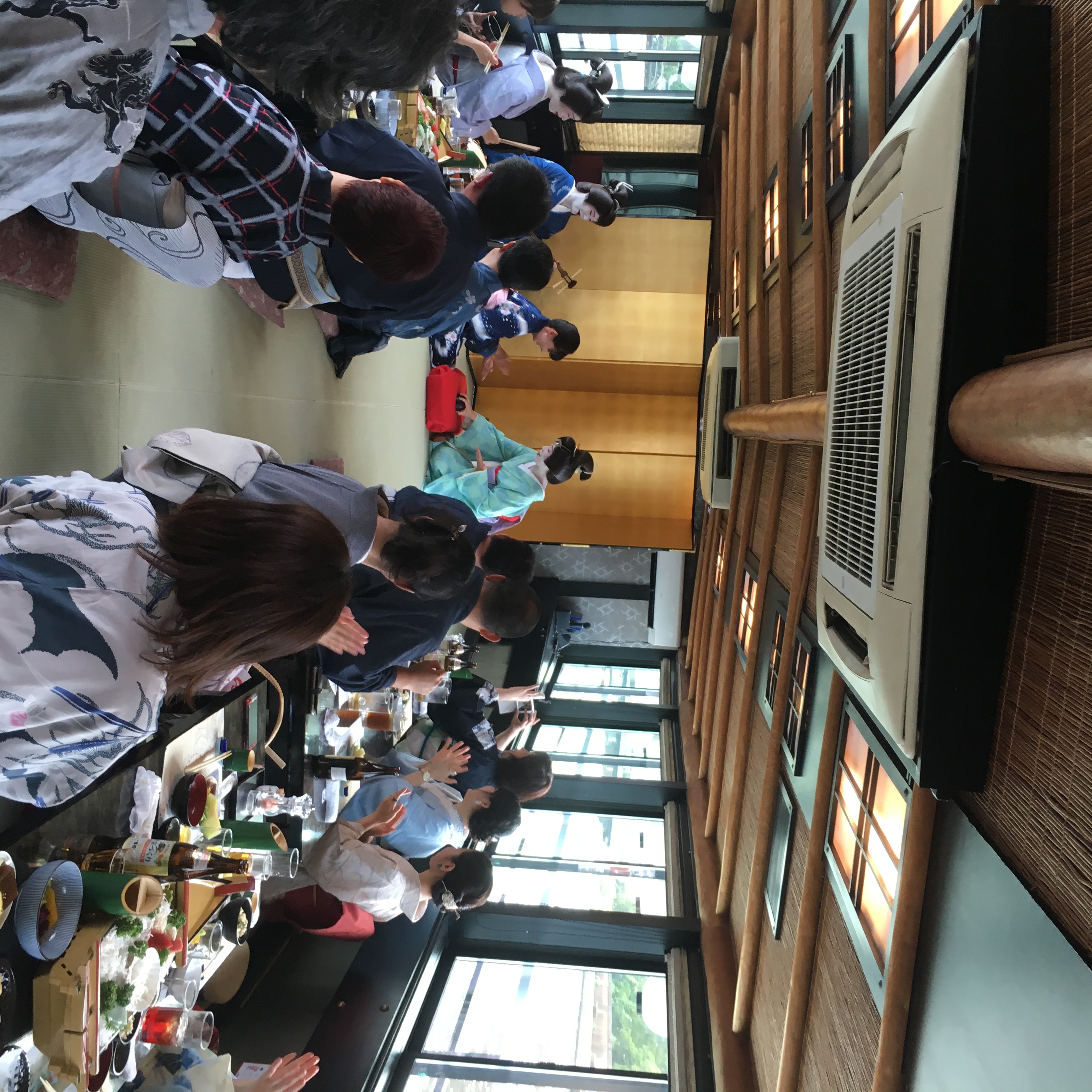 初夏を向かえた猛暑日の中、品川の舟屋「大江戸」の屋形船を貸し切り、大井海岸の芸者衆3名をお呼びしお座敷遊びの会を開催致しました。30名程の方にご参加頂いた上、浴衣のレンタルもご用意し、参加者全員が浴衣という夏を感じる交流会となりました。