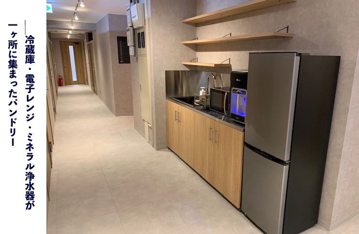 レンタルオフィスの共用部(会議室やパントリー・お手洗い)はいつもきれいに清掃が行き届いており、気持ちよく利用させていただいております。
