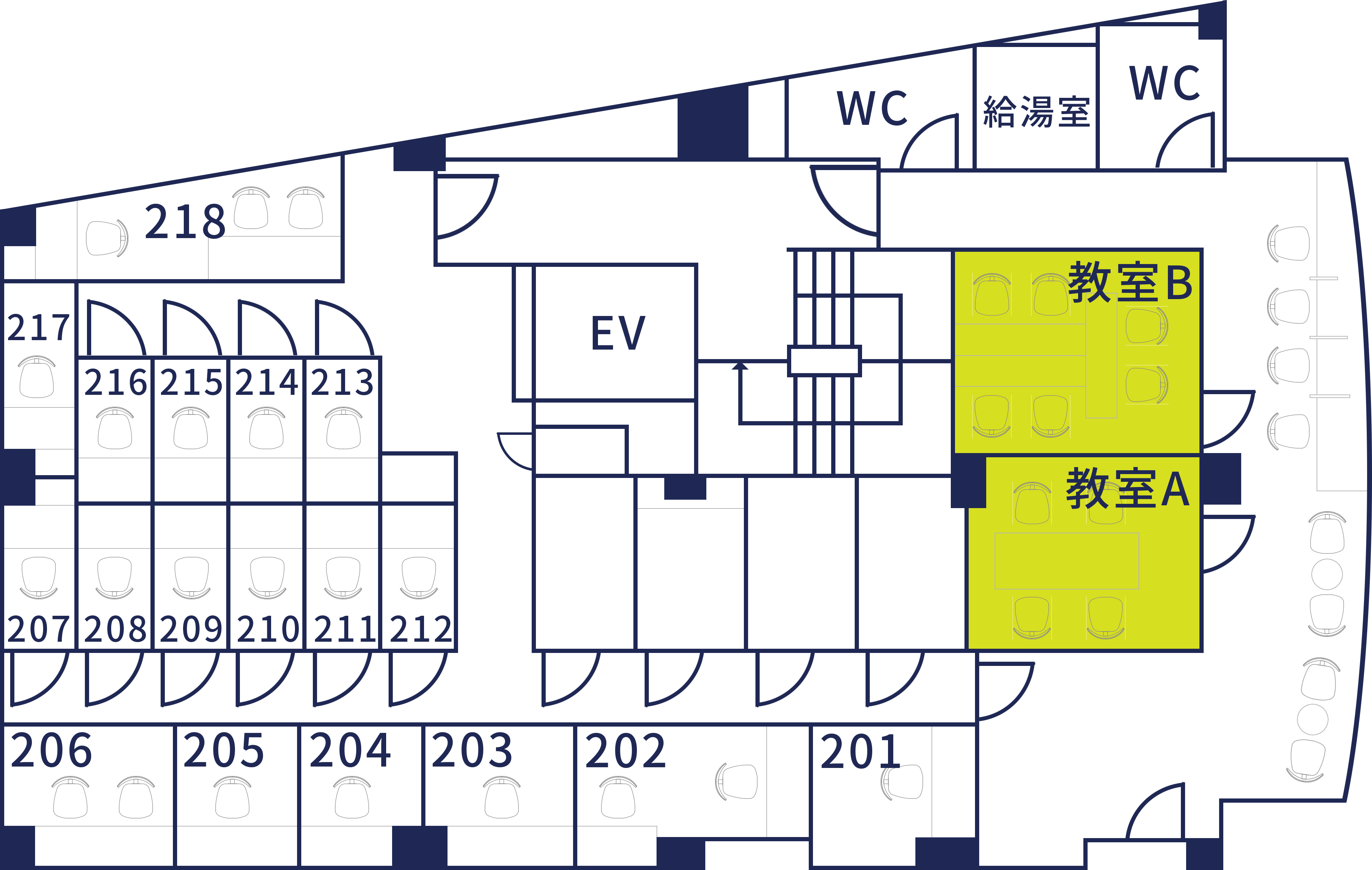 | 設備 | ・ホワイトボード1つ ・テーブル3つ ・チェアー6脚 ・個別空調 ・Wi-Fi |