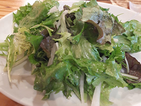 ランチメニューは、メインの他にグリーンサラダとドリンクがセットになっています。
