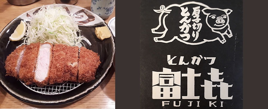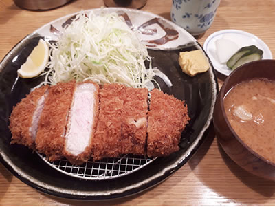 厚切りロースカツ。自家製の柚子胡椒でどうぞ。 |