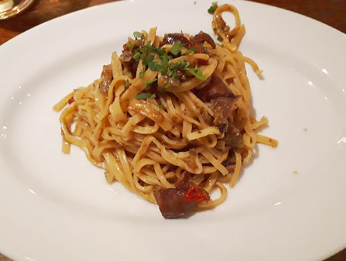 4月の訪問だったので、春らしいホタルイカとフキノトウのパスタ(タリオリーニ)。かなり美味です!!! |