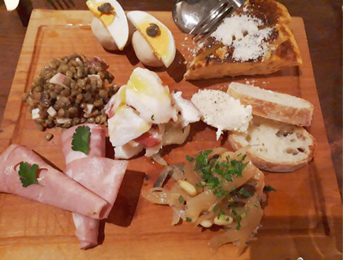 メニューは手書きのブラックボード。アラカルトで注文します。