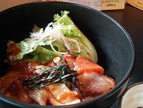 六穀豚のハンバーグをいただきましたところ、確かにジューシーながらも後味はさっぱり。お肉を食べてはいるのですが、何か健康的な感じがしました。