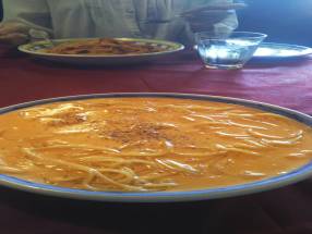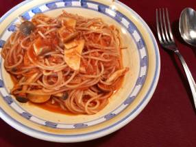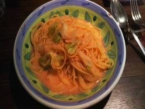 トマトクリームパスタ。ソースたっぷりなみなみ。本当におなか一杯になります。 |