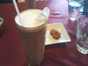 食後にはコーヒー・紅茶・カフェラテと選べるのですが、このカフェラテがおいしいとってもおすすめです! |