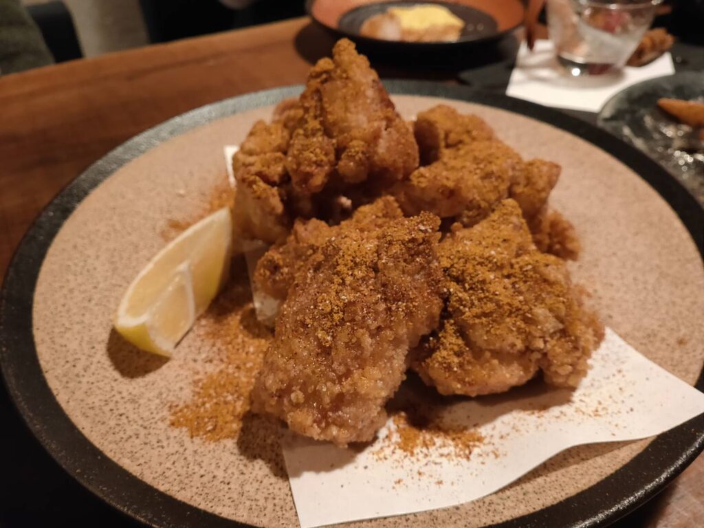 夜のコースを頼むと出てくる絶品のからあげ。からあげにかかっているスパイシーなパウダーが最高。 |