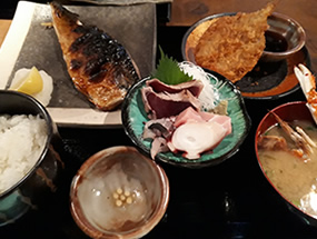 魚三昧定食は、焼き魚、お刺身、フライが付いてきます。