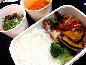 レッドガイヤーン弁当。タイのローストチキン・ガイヤーンとタイのレッドカレー。カレーはしっかり辛め。香辛料が効いていてとても美味しいです。 |