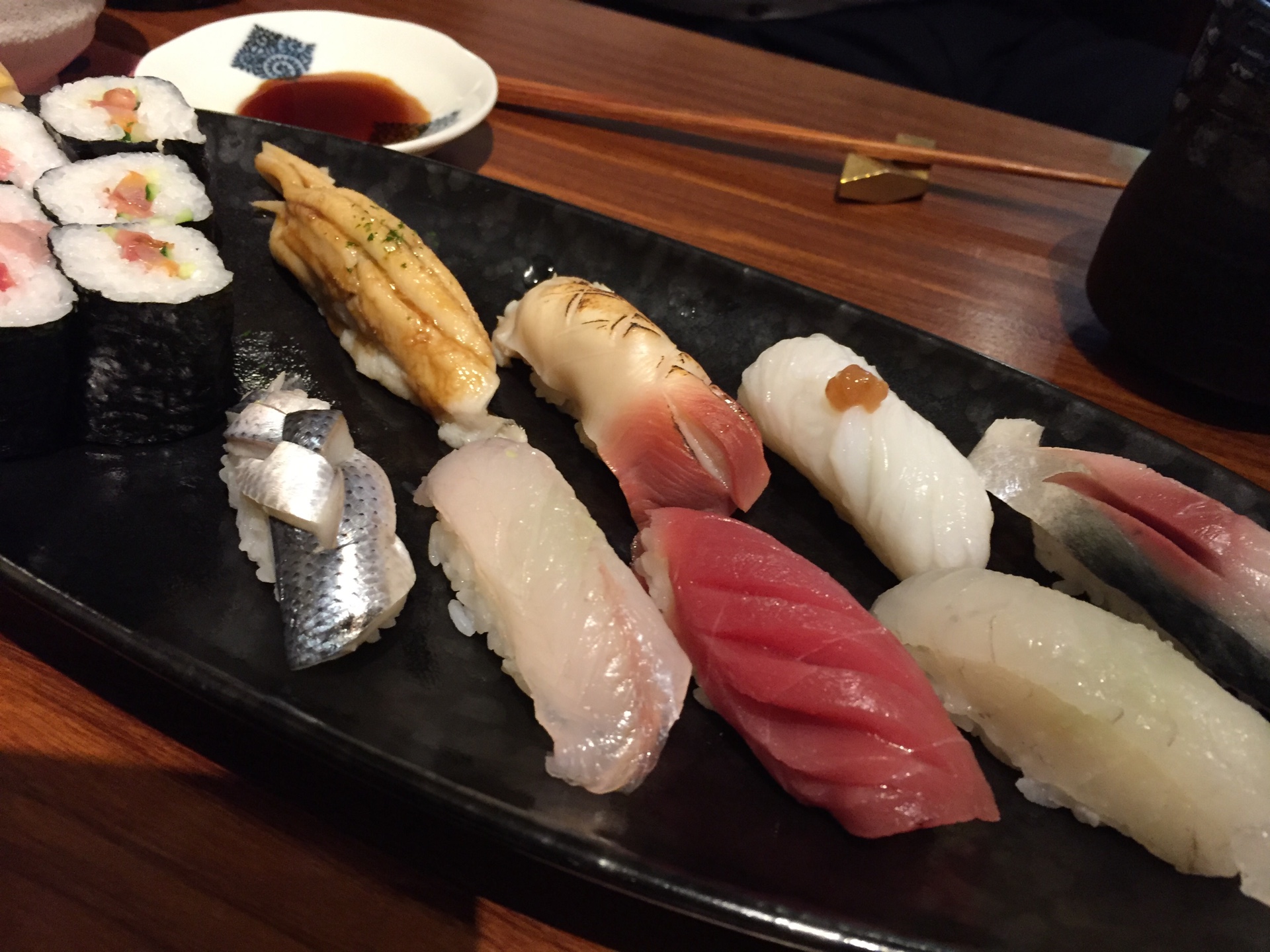 お寿司8貫、巻物、お吸い物がセットになったお得なセット。その日のおすすめのネタで握ってくださいます。 |