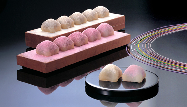 「長生殿」は、島根県の松江・風流堂が復刻した紅白の落雁「山川」と、新潟県の長岡・越乃雪本舗大和屋が